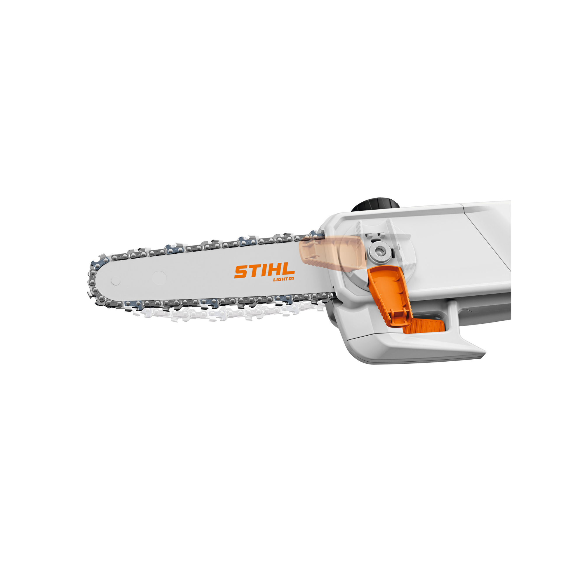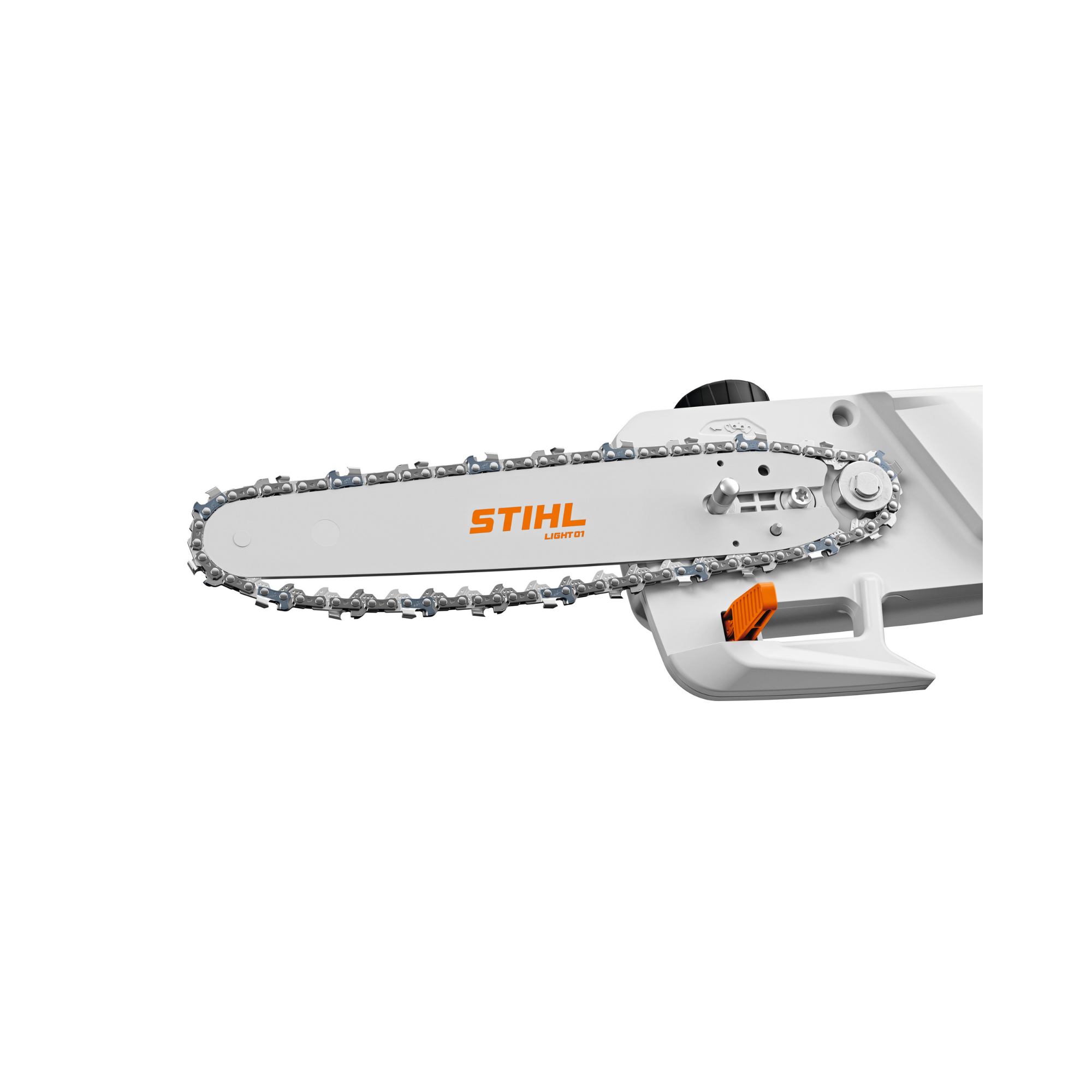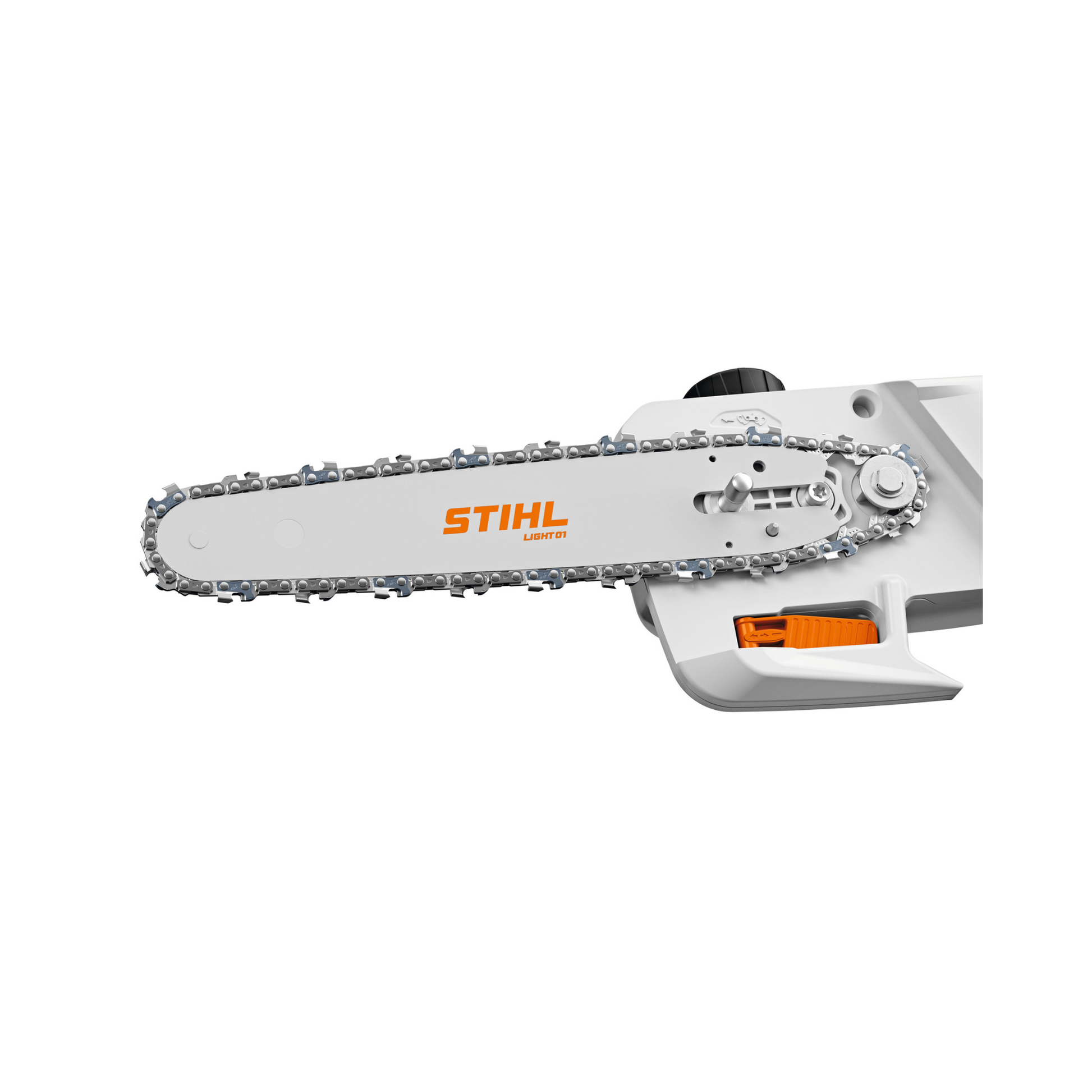 The HTA 30 uses a 20 cm STIHL Light 01 bar paired with a 1/4" PM3 chain, allowing clean and precise cuts on branches up to 17 cm diameter. Chain tensioning is fully tool-free thanks to an intelligent spring-loaded mechanism that automatically adjusts when you open and close the sprocket cover.