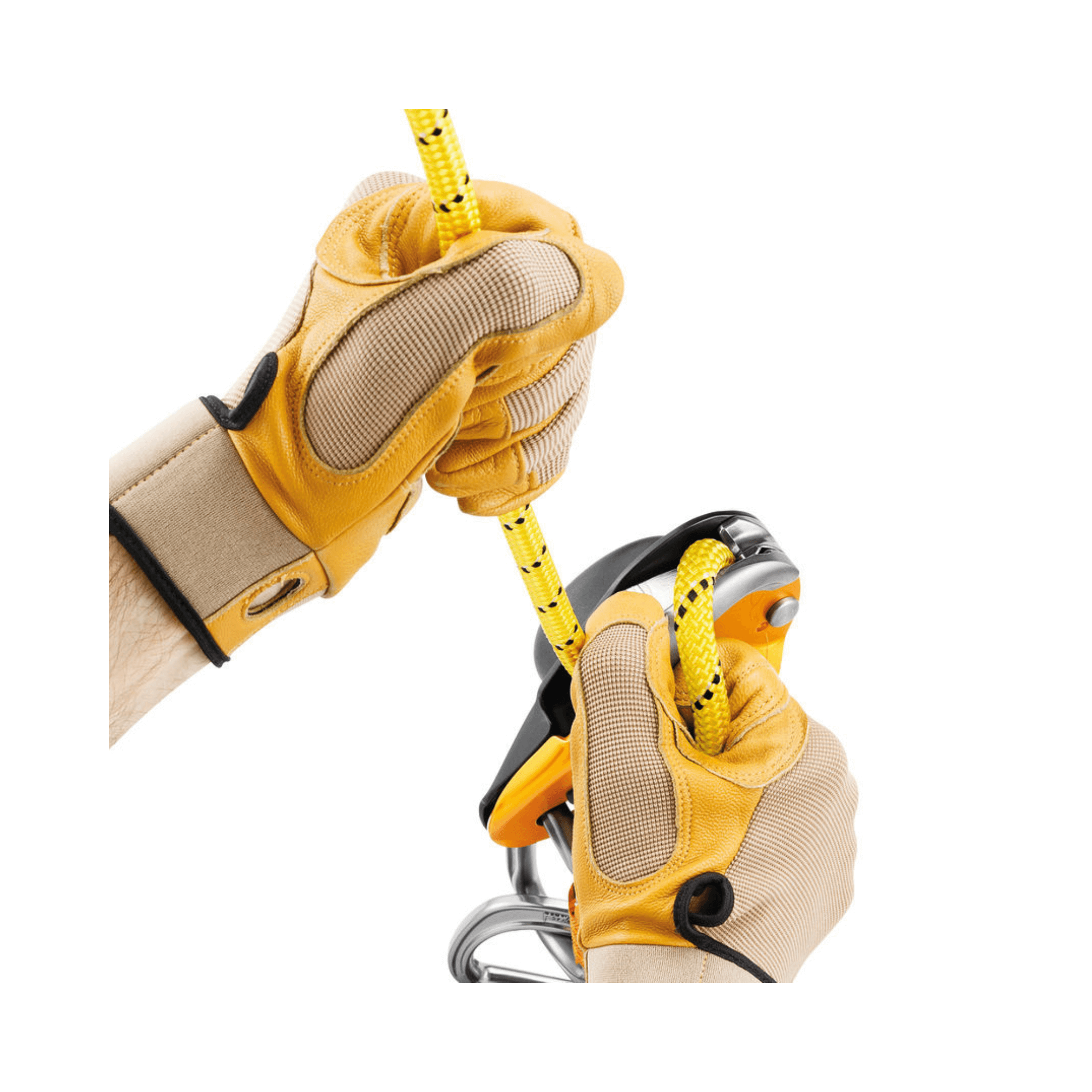 - Safety gate on the moving side plate allows the rope to be easily installed while the device remains connected to the harness, making it easier to pass intermediate anchors