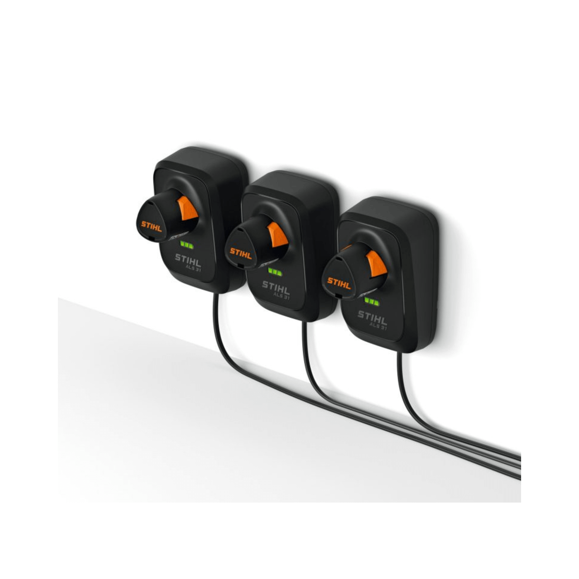 The STIHL ALS 31 is a compact battery charger designed for STIHL AS System batteries, with a wide input range of 100–240 V for convenient charging at home, in the workshop, or on site.